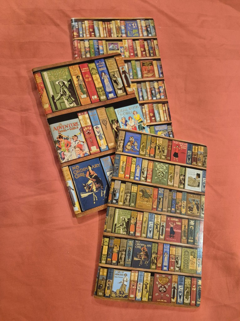 This is what my sister got for me, a belated Christmas present. What’s especially fabulous about these journals, is the titles of the books on the cover: A Courageous Girl, A Willful Girl, Gal’s Gossip, No Ordinary Girl, A Girl of Distinction, The Worst Girl in School, Two Girls and a Secret. Do you see a pattern? (Girl Power) AND- one side of the page is lined, the other is plain, perfect for doodles. Could it get any better?